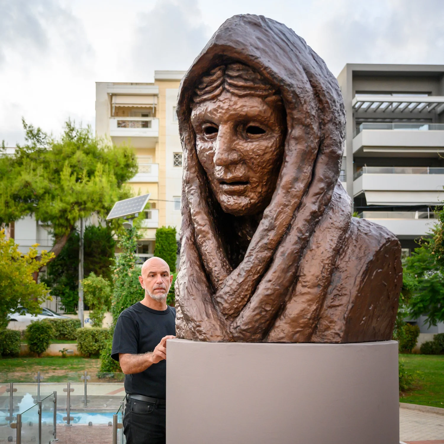 Named a “globally recognized sculptor” by Forbes (2022), George Petrides’ work can be seen around the world, ranging from public sculptures in Greece and Turkey marking the centennial of the destruction of Smyrna in 1922, to a bronze head in the renovated Tiffany’s flagship store at 727 Fifth Avenue in New York. Petrides, who lives and works primarily in New York City, creates sculptures that include figurative and abstract, in sizes ranging from palm-sized to over 12 feet on a base. Born and partially raised in Greece, he is steeped in ancient Greek and Roman sculpture and the later works that were influenced by it (Donatello, Michelangelo, Rodin, Maillol, et al.). Furthermore, modernist sculptors of the mid-20th century such as Giacometti and contemporary sculptors who reference ancient Greek sculpture such as Ray and Bhabha have played an important role in his work. His primary artistic interest is in the human experience in the form of the body and the head, exploring the beauty and the imperfection of people and of life.