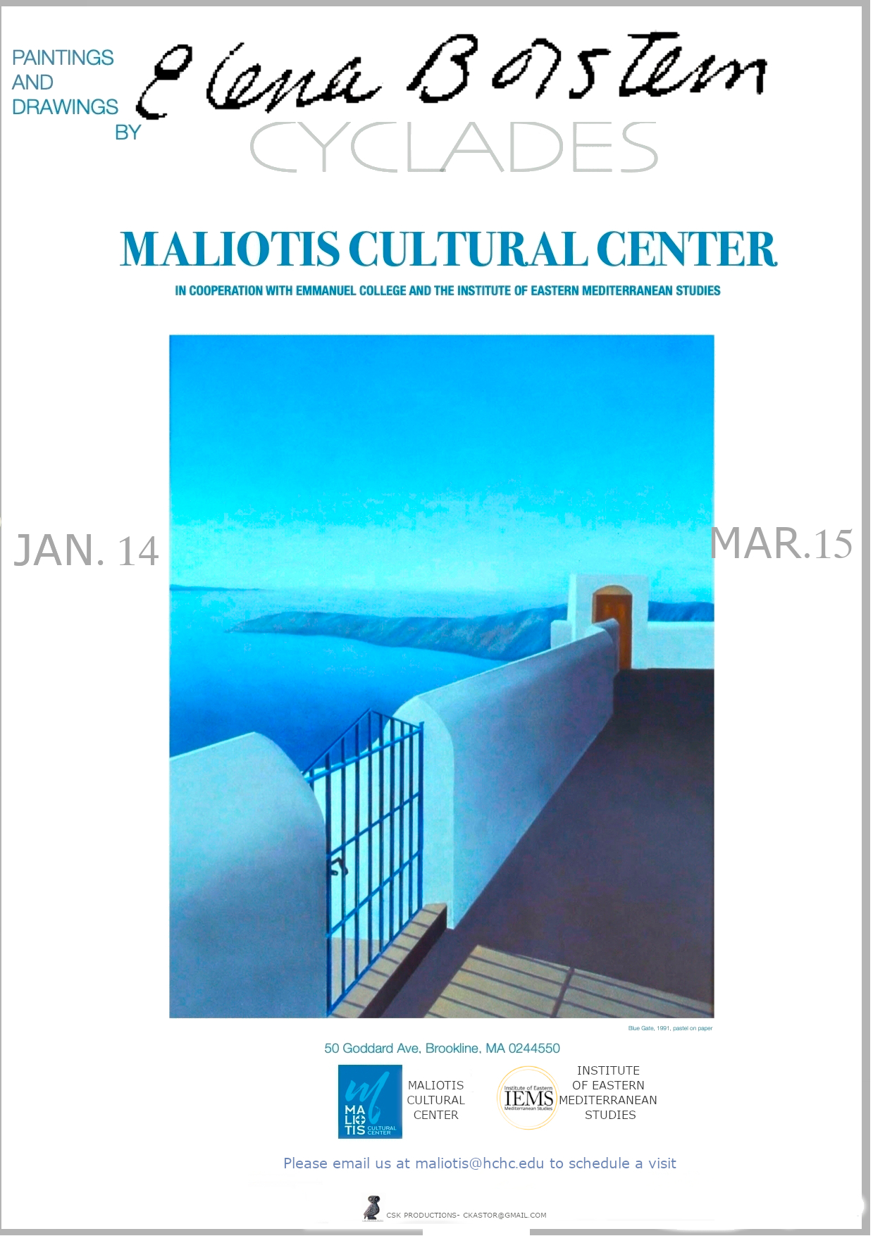 The exhibition titled “Elena Borstein, CYCLADES”, is being sponsored by Maliotis Cultural Center from January 14 – March 15, 2023,