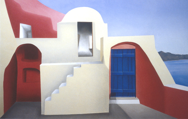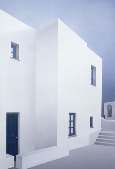 “Elena Borstein is at one with the buildings, especially the Greek ones in the Aegean Sea that she paints. Although she does not seek to penetrate the character secrets of