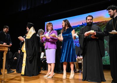 Dr. Demetrulias immersed the audience in the fascinating world of Greek folk dress, offering insights into its significance, craftsmanship, and the cultural stories it represents. Following the presentation by Dr. Diana, Dr. John Pappas, the Director of the Metropolis of Boston Greek Dance Program showcases several Greek folk dances from Megara, a “Ludovikos” male dance, a couples dance from Megara, followed by “Tsakonikos,” a labyrinthine Peleponessian dance, and ending with Tsamiko and Kalamatianio dances.